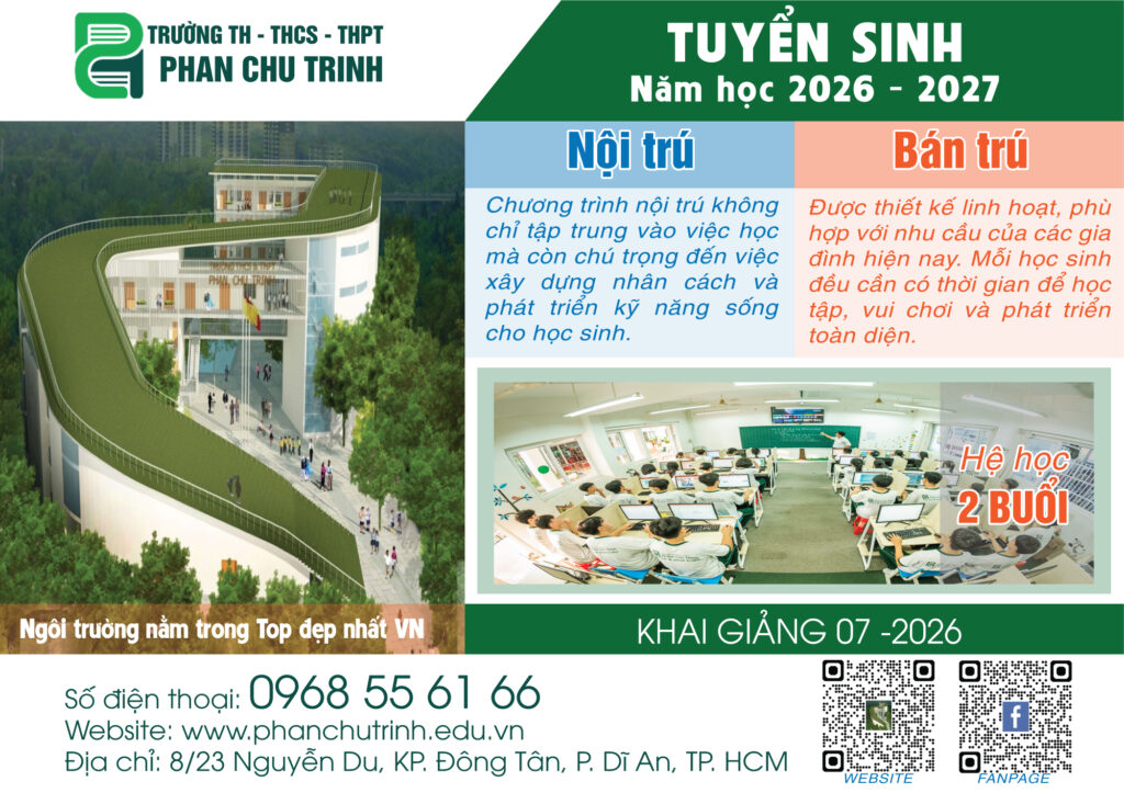 “Tự tin, năng động, thực tiễn và sáng tạo là các cam kết của nhà trường về phẩm chất của học sinh tốt nghiệp tại trường TH – THCS – THPT Phan Chu Trinh!”