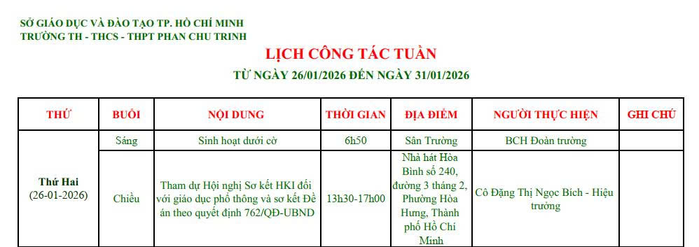 Lịch công tác tuần
